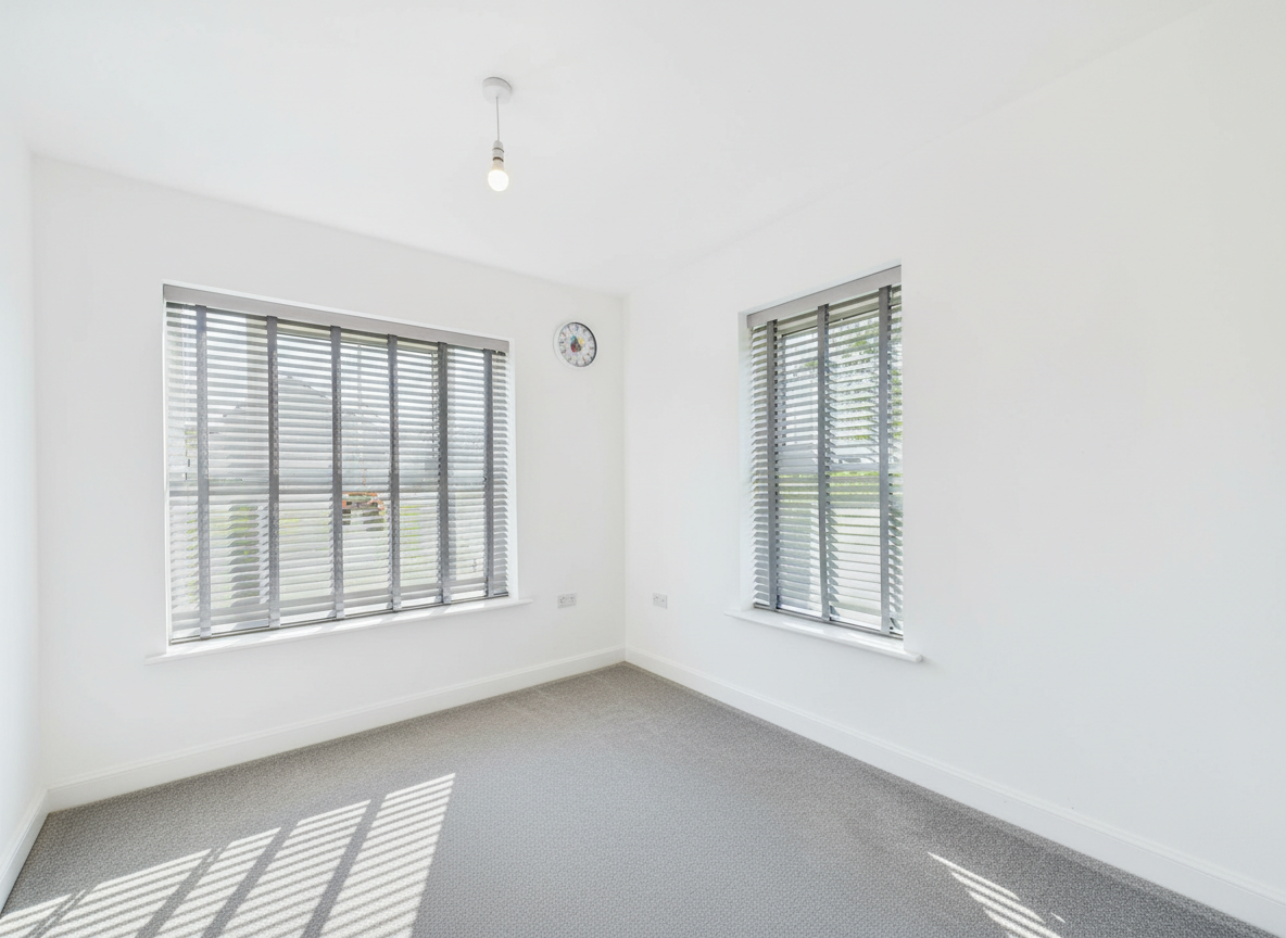 A spacious third bedroom well-suited for a double bed and additional furnishings. Light and airy, it offers plenty of space for comfortable living or study.