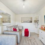 Carpeted flooring and attractive half paneled walls. Upvc double glazed window to the front aspect and central heating radiator below.