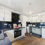 Modern kitchen fitted with a range of grey high gloss units to both high and low levels. Complimentary worktop with splashback and inset sink, drainer and mixer tap. Four ring electric hob with electric oven below and extractor hood above. Plumbing for automatic washing machine and space for under counter fridge and freeze. Door leading to rear garden and door to pantry storage. Upvc double glazed window overlooking rear.