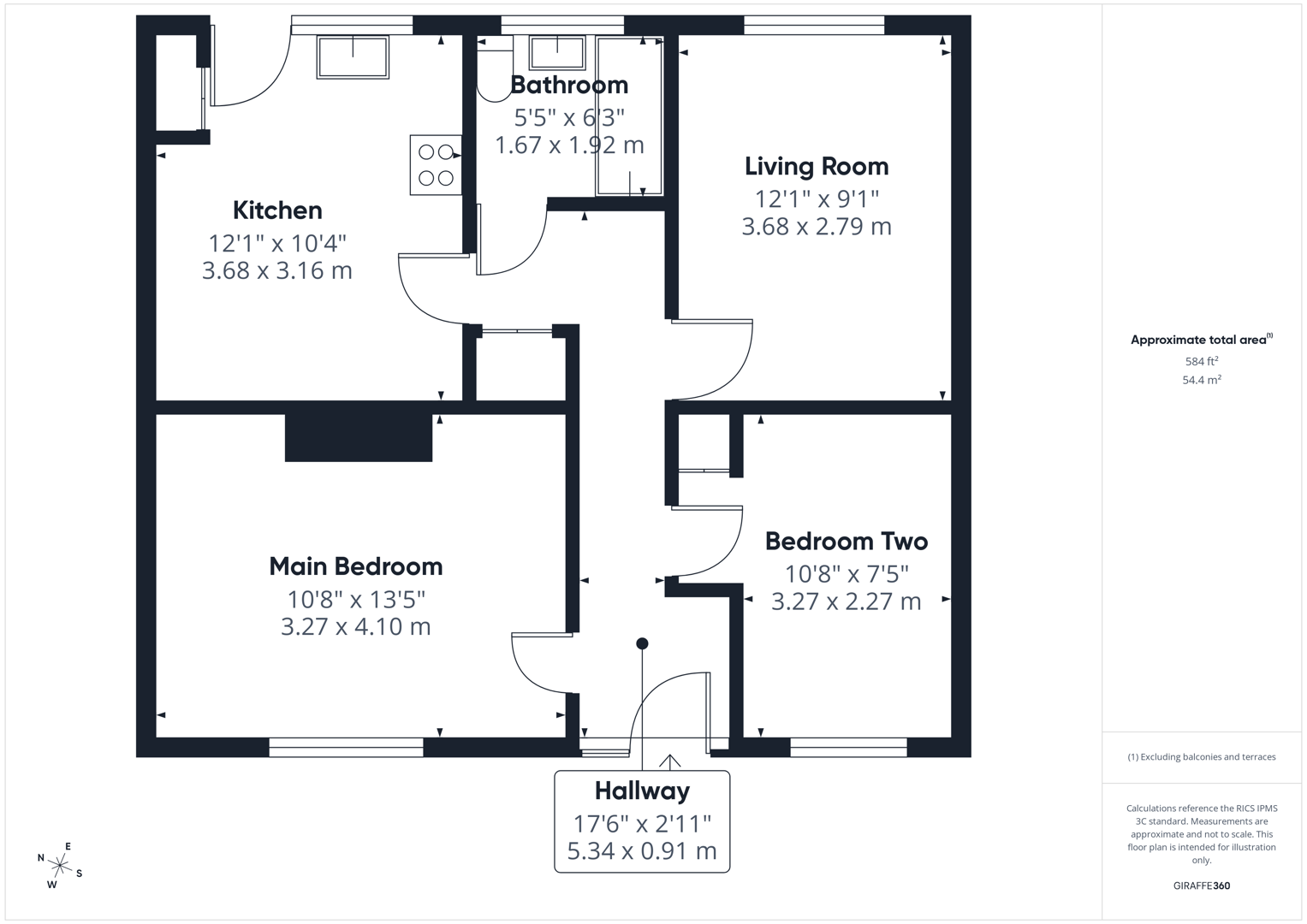 Leading from the front entrance door into an inner hallway with doors to the lounge, kitchen, two bedrooms and bathroom.