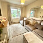 Carpeted flooring and attractive half paneled walls. Upvc double glazed window to the front aspect and central heating radiator below.