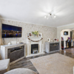A fireplace with hearth and surround and electric fire. Under stairs storage cupboard. UPVC double glazed bow window to the front elevation. Gas central heated radiator. Wood effect laminate flooring. Archway opens into the kitchen diner.
