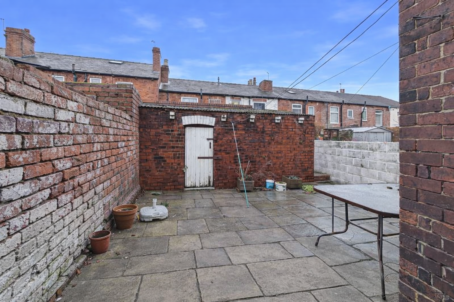 To the rear, there is a garag style workshop and enclosed garden space, adding practicality and further potential. A shared access runs through the middle, providing rear access if required, although the property is primarily served by on-street parking.