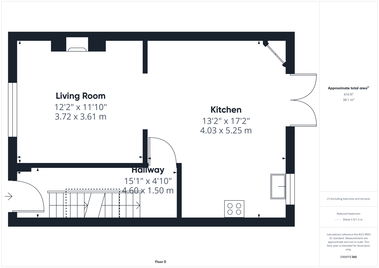 Access to the kitchen/dining room, cellar, living room and staircase leading to the first floor. Tiled flooring throughout. Central heated radiator.