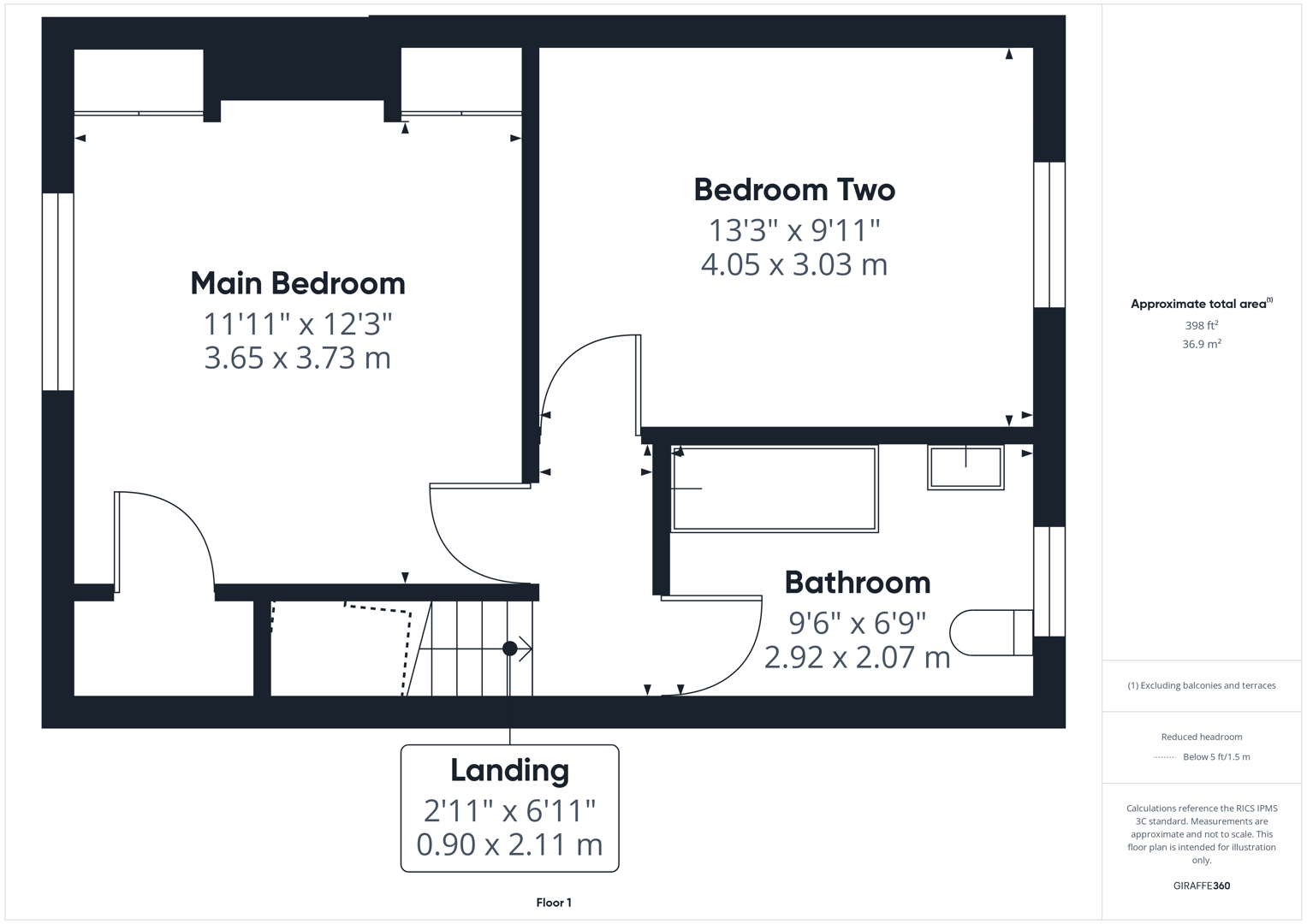 To the first floor, the landing gives access to both spacious bedrooms and the family bathroom.