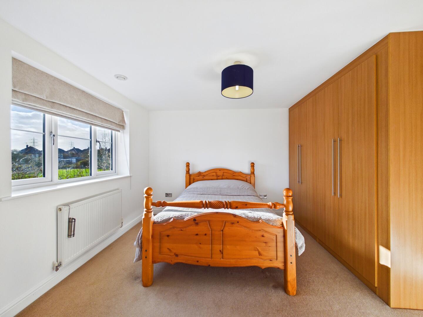 A freestanding triple wardrobe, double glazed window to the front elevation, a gas central heated radiator below. Access door into ensuite.