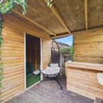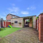 The rear garden features a blend of decking and low-maintenance artificial grass, providing an ideal outdoor space for play and relaxation. At garden room ideal for entertaining with a sheltered seating area, creates a versatile environment for outdoor living.