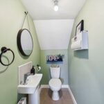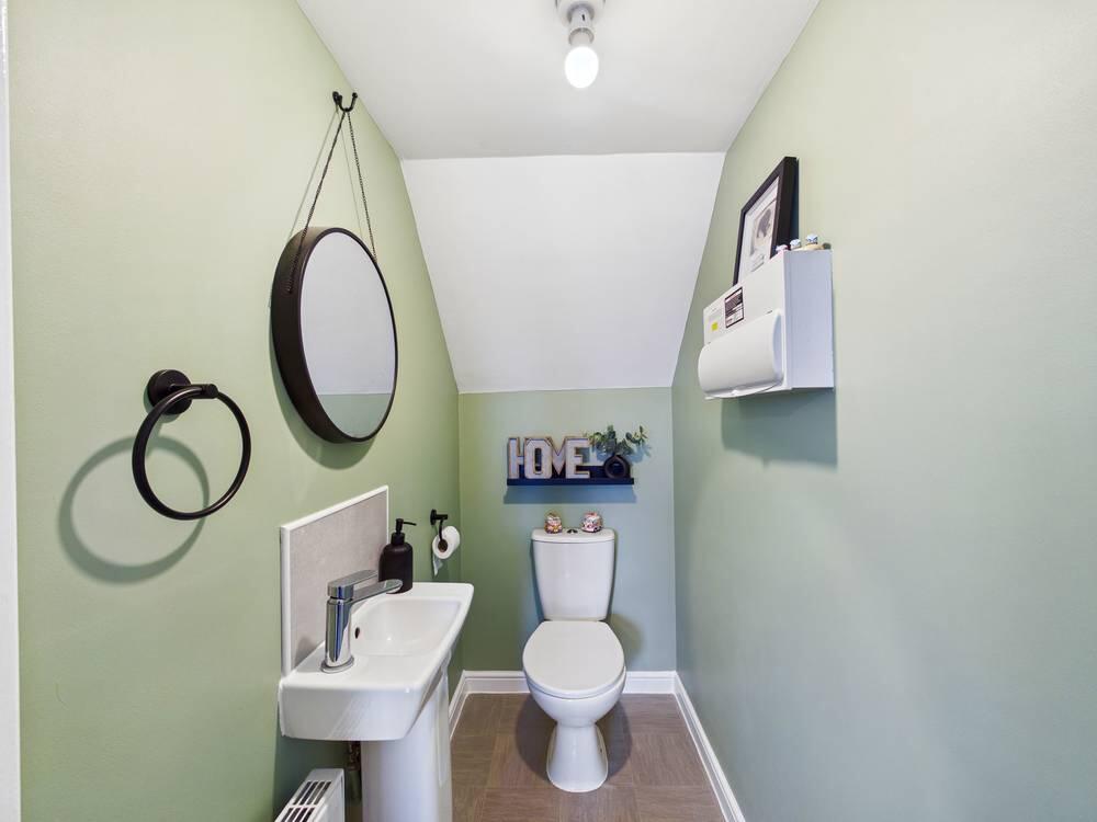 WC with low level flush. Wash hand basin with chrome mixer tap. Extractor fan. Wood effect flooring. Central heated radiator.