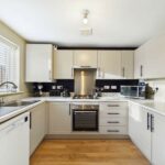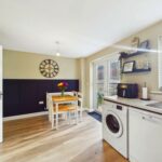 Range of high and low level kitchen units in shaker style. Integrated appliances including oven, gas hob and extractor hood over. Option to reconnect plumbing for washing machine. Space for fridge/freezer. Sink with drainer and chrome mixer tap over. Access to downstairs WC. UPVC double glazed French doors leading to the rear garden. Wood effect flooring. Central heated radiator. UPVC double glazed window to the rear.