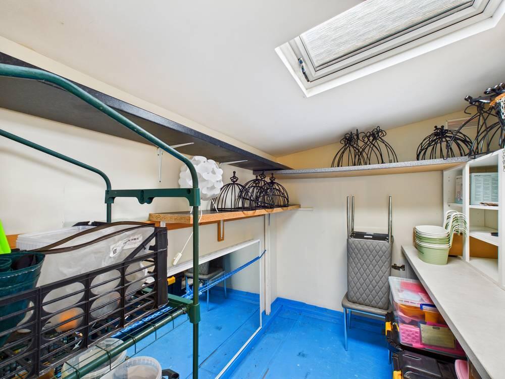 A smaller room attached to the out-house, this space is ideal for additional storage or a small workshop. It is compact and versatile, with a window for daylight.