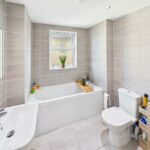 UPVC double glazed window to the side elevation bathtub with mixer tap. Sink with mixer tap, double shower cubicle with a mains feed waterfall shower, the walls and flooring are fully tiled.