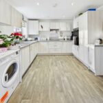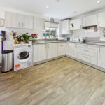 Modern range of high and low level kitchen units. Integrated fridge/freezer, double oven, electric hob with extractor hood over. Option to reconnect plumbing for washing machine. One and half bowl sink with drainer and chrome mixer tap. Wood effect flooring. Central heated radiator. UPVC double glazed windows to both the front and side.