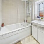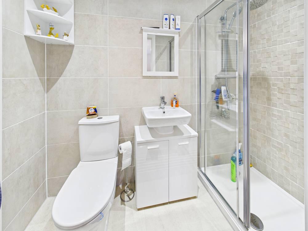 White suite comprising of WC with low level flush. Wash hand basin with chrome mixer tap. Shower cubicle with mains feed shower. Full height wall tiling. Extractor fan. Tiled effect flooring. Central heated chrome towel rail.