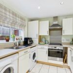 Range of high and low level shaker style kitchen units with laminate worktops. Integrated appliances including oven with four ring electric hob and stainless steel extractor hood over. Option to reconnect plumbing for washing machine. Space for dryer and fridge/freezer. Stainless steel sink with drainer and chrome mixer tap over. French doors leading to the rear garden. Tiled flooring. Central heated radiator. UPVC double glazed window looking to the rear garden.