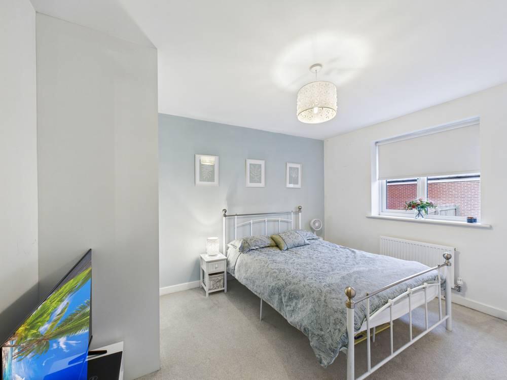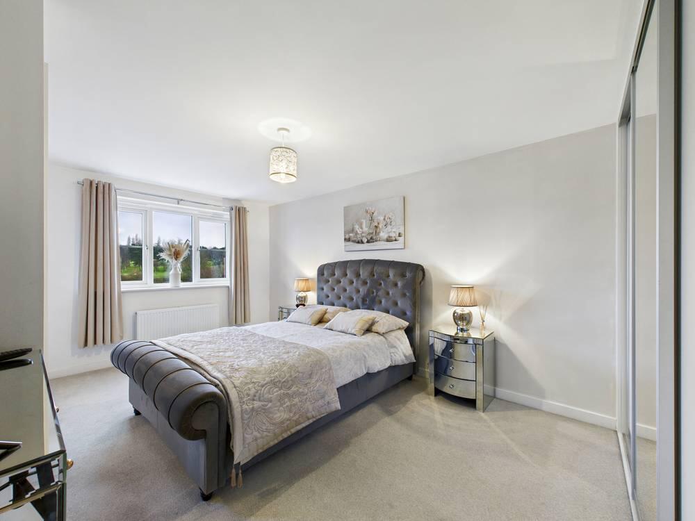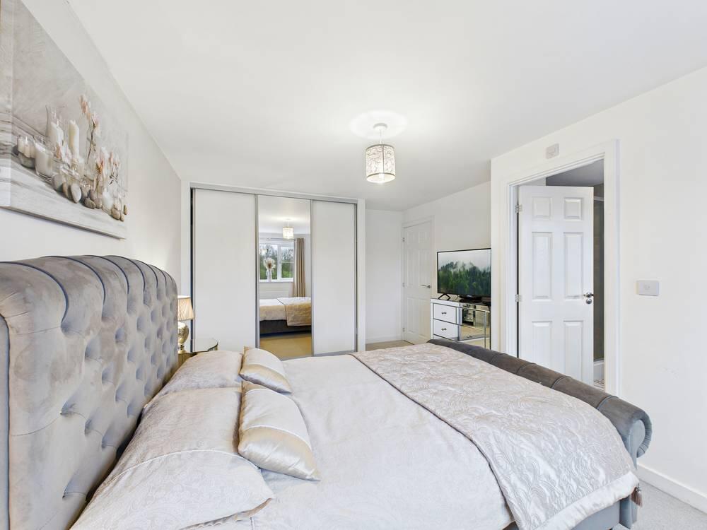 Full height fitted wardrobes. Access to en suite. Carpeted throughout. Central heated radiator. UPVC double glazed window looking to the rear garden.