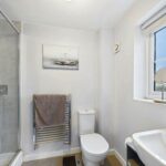 WC with low level flush. Wash hand basin with chrome taps. Extractor fan. Tiled flooring. Central heated radiator.