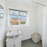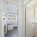 Myra advanced thermostatic shower, pedestal wash basin with chrome taps, full height wall tiling, central heated radiator and UPVC double glazed window to the rear aspect.