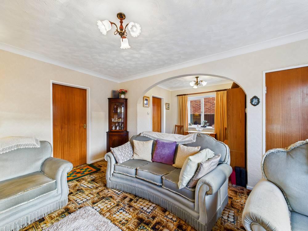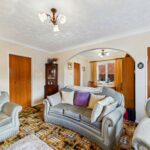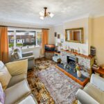 A stone built feature fireplace with shelving to the side incorporating a living flame effect gas fire sat on a tile effect hearth. Two central heated radiators, dual aspect UPVC double glazed windows, access to the stairs.