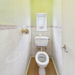 WC with low level flush. Wood effect flooring. UPVC frosted double glazed window to the side elevation.