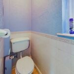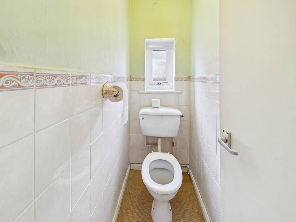 WC with low level flush. UPVC double glazed frosted window to the side elevation.