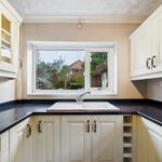A range of high and low level kitchen units in shaker style with complimentary work tops. Sink with drainer and chrome mixer tap over. Freestanding Logik range style cooker. Wood effect flooring. UPVC double glazed window to the rear and side elevation.